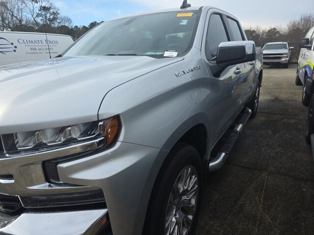 Clean CARFAX. Silverado 1500 LTD LT, 4D Crew Cab, EcoTec3 5.3L V8, 8-Speed Automatic, RWD, Silver Ice Metallic, Jet Black w/Leather-Appointed Front Seat Trim, 10-Way Power Driver Seat w/Lumbar, 12-Volt Rear Auxiliary Power Outlet, 170 Amp Alternator, 2 USB Ports (First Row), 220 Amp Alternator, 4-Wheel Disc Brakes, 4.2" Diagonal Color Display Driver Info Center, 40/20/40 Front Split-Bench Seat, 6 Speakers, 6-Speaker Audio System, ABS brakes, Air Conditioning, All-Star Edition, All-Weather Floor Liner (LPO), AM/FM radio: SiriusXM, Apple CarPlay/Android Auto, Auto-Locking Rear Differential, Automatic temperature control, Auxiliary External Transmission Oil Cooler, Bluetooth® For Phone, Brake assist, Bumpers: chrome, Chevrolet Connected Access Capable, Chrome Grille, Chrome Mirror Caps, Color-Keyed Carpeting Floor Covering, Compass, Convenience Package, Deep-Tinted Glass, Delay-off headlights, Driver door bin, Driver vanity mirror, Dual front impact airbags, Dual front side impact airbags, Dual-Zone Automatic Climate Control, Electric Rear-Window Defogger, Electronic Cruise Control, Electronic Stability Control, External Engine Oil Cooler, EZ Lift Power Lock & Release Tailgate, Front anti-roll bar, Front Center Armrest w/Storage, Front dual zone A/C, Front reading lights, Front Rubberized Vinyl Floor Mats, Front wheel independent suspension, Fully automatic headlights, Heated door mirrors, Heated Driver & Front Outboard Passenger Seats, Heated front seats, Heated Steering Wheel, Heated steering wheel, Heavy Duty Suspension, Hitch Guidance, Illuminated entry, Keyless Open & Start, Leather Wrapped Steering Wheel, LED Cargo Area Lighting, Low tire pressure warning, Manual Tilt/Telescoping Steering Column, Not Equipped w/Heated Steering Wheel, Not Equipped w/Heated/Ventilated Front Seats, Occupant sensing airbag, OnStar & Chevrolet Connected Services Capable, Outside temperature display, Overhead airbag, Overhead console, Panic alarm, Passenger door bin, Passenger vanity mirror, Power Door Locks, Power door mirrors, Power driver seat, Power Front Windows w/Driver Express Up/Down, Power Front Windows w/Passenger Express Down, Power Rear Windows w/Express Down, Power steering, Power windows, Preferred Equipment Group 1LT, Premium audio system: Chevrolet Infotainment 3, Radio data system, Radio: Chevrolet Infotainment 3 System, Rear 60/40 Folding Bench Seat (Folds Up), Rear Dual USB Charging-Only Ports, Rear reading lights, Rear Rubberized-Vinyl Floor Mats, Rear step bumper, Rear Vision Camera, Rear window defroster, Remote keyless entry, Remote Vehicle Starter System, Security system, SiriusXM Radio, Speed control, Speed-sensing steering, Split folding rear seat, Standard Tailgate, Steering Wheel Audio Controls, Steering wheel mounted audio controls, Tachometer, Telescoping steering wheel, Theft Deterrent System (Unauthorized Entry), Tilt steering wheel, Traction control, Trailering Package, Trip computer, Variably intermittent wipers, Voltmeter, Wheels: 17" x 8" Bright Silver Painted Aluminum, Wi-Fi Hot Spot Capable.