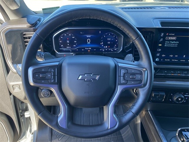 CARFAX One-Owner. ALL STAR EDITION PLUS *NON SMOKER, *BLUETOOTH, *REAR BACK-UP CAMERA, Silverado 1500 RST ALL STAR EDITION PLUS, 4D Crew Cab, EcoTec3 5.3L V8, 10-Speed Automatic, 4WD, Sterling Gray Metallic, Black Leather, 10-Way Power Driver Seat w/Lumbar, 12.3" Multicolor Reconfigurable Digital Display, 120-Volt Bed Mounted Power Outlet, 120-Volt Interior Power Outlet, 170 Amp Alternator, 2 USB Data Ports, 220 Amp Alternator, 4-Wheel Disc Brakes, 40/20/40 Front Split-Bench Seat, 6 Speakers, 6-Speaker Audio System, ABS brakes, Adaptive Cruise Control, Air Conditioning, All Star Edition Plus, All-Star Edition, All-Weather Floor Liner (LPO) (AAK), AM/FM radio: SiriusXM with 360L, Auto High-beam Headlights, Auto-Locking Rear Differential, Automatic Emergency Braking, Automatic temperature control, Auxiliary External Transmission Oil Cooler, Black Exhaust Tip Bezels (LPO), Black Name Plates (LPO), Bluetooth® For Phone, Brake assist, Bumpers: body-color, Chevrolet Connected Access Capable, Chevytec Spray-On Black Bedliner, Cloth Seat Trim, Color-Keyed Carpeting Floor Covering, Compass, Convenience Package, Convenience Package II, Dark Essentials Package (LPO), Deep-Tinted Glass, Delay-off headlights, Driver door bin, Driver vanity mirror, Dual Exhaust w/Polished Outlets, Dual front impact airbags, Dual front side impact airbags, Dual Rear USB Ports (Charge Only), Dual-Zone Automatic Climate Control, Electric Rear-Window Defogger, Electrical Steering Column Lock, Electronic Cruise Control, Electronic Stability Control, Electronic Transmission Range Selector Shifter, External Engine Oil Cooler, EZ Lift Power Lock & Release Tailgate, Floor Mounted Center Console, Following Distance Indicator, Forward Collision Alert, Front anti-roll bar, Front Bucket Seats, Front Center Armrest w/Storage, Front dual zone A/C, Front fog lights, Front Frame-Mounted Black Recovery Hooks, Front LED Fog Lamps, Front Pedestrian Braking, Front reading lights, Front Rubberized Vinyl Floor Mats, Front wheel independent suspension, Fully automatic headlights, HD Rear Vision Camera, HD Surround Vision, Heated door mirrors, Heated Driver & Front Outboard Passenger Seats, Heated front seats, Heated Power-Adjustable Outside Mirrors, Heated Steering Wheel, Heated steering wheel, Heavy-Duty Air Filter, High Capacity Suspension Package, High Gloss Black Mirror Caps, Hill Descent Control, Hitch Guidance, Hitch Guidance w/Hitch View, Illuminated entry, In-Vehicle Trailering System App, Inside Rear-View Mirror w/Tilt, Integrated Trailer Brake Controller, IntelliBeam Automatic High Beam On/Off, Keyless Open & Start, Lane Keep Assist w/Lane Departure Warning, Leather Package, Leather-Appointed Front Seat Trim, LED Cargo Area Lighting, Low tire pressure warning, Multi-Flex Tailgate, Occupant sensing airbag, Off-Road Suspension, OnStar & Chevrolet Connected Services Capable, Outside temperature display, Overhead airbag, Overhead console, Panic alarm, Passenger door bin, Passenger vanity mirror, Perimeter Lighting, Power door mirrors, Power driver seat, Power Front Windows w/Driver Express Up/Down, Power Front Windows w/Passenger Express Down, Power Rear Windows w/Express Down, Power Sliding Rear Window w/Rear Defogger, Power steering, Power windows, Preferred Equipment Group 1SP, Premium audio system: Chevrolet Infotainment 3 Premium, Premium Bose 7-Speaker Sound System, Protection Package, Radio data system, Radio: Chevrolet Infotainment 3 Premium System, Rear 60/40 Folding Bench Seat (Folds Up), Rear Cross Traffic Braking, Rear Pedestrian Alert, Rear reading lights, Rear Rubberized-Vinyl Floor Mats, Rear step bumper, Rear Wheelhouse Liners, Rear window defroster, Remote keyless entry, Remote Vehicle Starter System, RST All Star Premium Package, Safety Package, Security system, Single Outlet Exhaust, SiriusXM w/360L, Speed control, Speed-sensing steering, Split folding rear seat, Standard Suspension Package, Standard Tailgate, Steering Wheel Audio Controls, Steering wheel