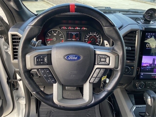 Clean CARFAX. CARFAX One-Owner. *NON SMOKER, *BLUETOOTH, *REAR BACK-UP CAMERA, *REMOTE START, *REMOTE KEYLESS ENTRY, *TOW PKG, *POWER SEAT, *NEW BRAKES, *NEW TIRES, F-150 Raptor, 4D SuperCrew, 3.5L V6 EcoBoost, 10-Speed Automatic, 4WD, Oxford White, Black Cloth, 17" Cast Aluminum Wheels, 4-Wheel Disc Brakes, 7 Speakers, 8-Way Power Driver's Seat w/Power Lumbar, ABS brakes, Air Conditioning, AM/FM radio: SiriusXM, Auto-dimming Rear-View mirror, Brake assist, CD player, Compass, Delay-off headlights, Driver door bin, Driver vanity mirror, Dual front impact airbags, Dual front side impact airbags, Electronic Locking w/4.10 Axle Ratio, Electronic Stability Control, Emergency communication system: 911 Assist, Equipment Group 800A Base, Exterior Parking Camera Rear, Front anti-roll bar, Front Bucket Seats, Front Center Armrest, Front fog lights, Front reading lights, Front wheel independent suspension, Fully automatic headlights, GVWR: 7,050 lbs Payload Package, Illuminated entry, Leather steering wheel, Low tire pressure warning, Occupant sensing airbag, Outside temperature display, Overhead airbag, Overhead console, Panic alarm, Passenger door bin, Passenger vanity mirror, Power door mirrors, Power driver seat, Power steering, Power windows, Radio data system, Radio: Single-CD/SiriusXM w/7 Speakers, Rear Parking Sensors, Rear reading lights, Rear step bumper, Rear window defroster, Remote keyless entry, Security system, Speed control, Speed-sensing steering, Split folding rear seat, Steering wheel mounted audio controls, SYNC, Tachometer, Telescoping steering wheel, Tilt steering wheel, Traction control, Trip computer, Unique Cloth Trim Seats, Variably intermittent wipers.