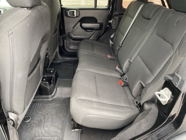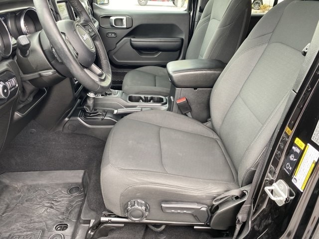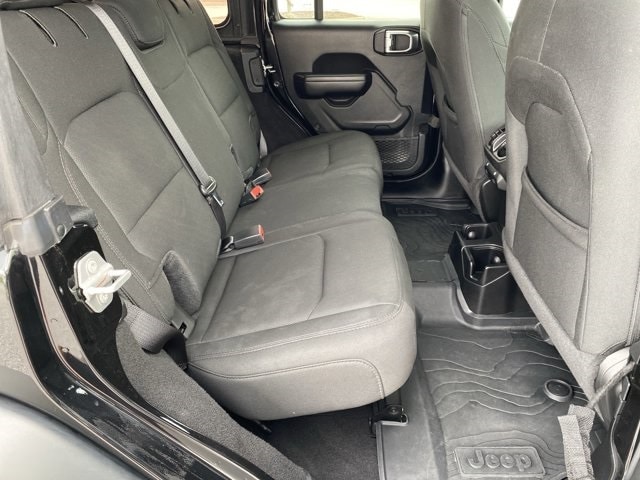 2021 Jeep Wrangler Unlimited Sport 4x4 in Black Clear Coat with Black cloth low-back bucket seats. Powered by the 2.0L turbocharged I4 engine paired with the 8-speed automatic transmission, this Wrangler blends open-air adventure, legendary Jeep 4x4 capability, and everyday comfort.
