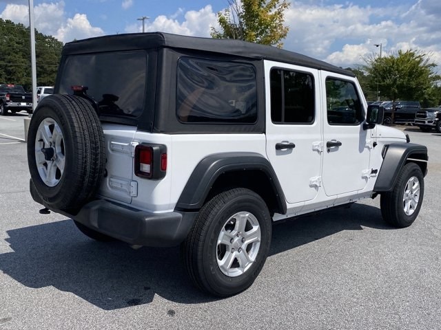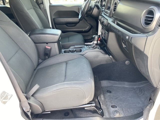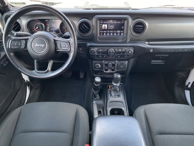 2022 Jeep Wrangler Unlimited Sport S 4x4 in Bright White Clear Coat with Black cloth low-back bucket seats. Powered by the 3.6L V6 eTorque engine with 8-speed automatic transmission, this Wrangler delivers legendary off-road capability with modern technology and comfort.