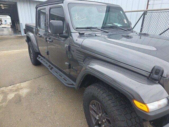Clean CARFAX. CARFAX One-Owner. Gladiator Sport, 4D Crew Cab, 3.6L V6 24V VVT, 8-Speed Automatic, 4WD, Granite Crystal Metallic Clearcoat, Black Cloth, 110 MPH Vehicle Max Speed Calibration, 12.3" Touchscreen Display, 4-Wheel Disc Brakes, 4G LTE Wi-Fi Hot Spot, 8 Speakers, ABS brakes, Advanced Brake Assist, Air Conditioning, Alexa Built-In, AM/FM radio: SiriusXM with 360L, Apple CarPlay, Apple CarPlay/Android Auto, Automatic Headlamps, Body Color Fender Flares (2-Piece), Brake assist, Cloth Low-Back Bucket Seats, Compass, Connectivity - US/Canada, Daytime Running Lamp System, Deep Tint Sunscreen Windows, Delay-off headlights, Disassociated Touchscreen Display, Driver door bin, Driver vanity mirror, Dual front impact airbags, Dual front side impact airbags, Electronic Stability Control, Emergency communication system: Jeep Connect, Emergency/Assistance Call, Enhanced Adaptive Cruise Control, Front 1-Touch Down Power Windows, Front anti-roll bar, Front Bucket Seats, Front Center Armrest w/Storage, Front fog lights, Front reading lights, Full Speed Forward Collision Warning Plus, Google Android Auto, Integrated Center Stack Radio, Integrated roll-over protection, Low tire pressure warning, Normal Duty Plus Suspension, Normal Duty Suspension, Occupant sensing airbag, Outside temperature display, Overhead airbag, ParkView Rear Back-Up Camera, Passenger door bin, Passenger vanity mirror, Power Heated Mirrors, Power steering, Power Tailgate Lock, Premium Wrapped Steering Wheel, Quick Order Package 24S Sport S, Radio data system, Radio: Uconnect 5 w/12.3" Display, Rear anti-roll bar, Rear reading lights, Remote Keyless Entry, Security Alarm, SiriusXM Radio Service, SiriusXM w/360L, Speed control, Speed Sensitive Power Locks, Split folding rear seat, Steering wheel mounted audio controls, Sun Visors w/Illuminated Vanity Mirrors, Tachometer, Telescoping steering wheel, Tilt steering wheel, Traction control, Trip computer, USB Host Flip, Variably intermittent wipers, Voltmeter, Wheels: 17" x 7.5" Gray.