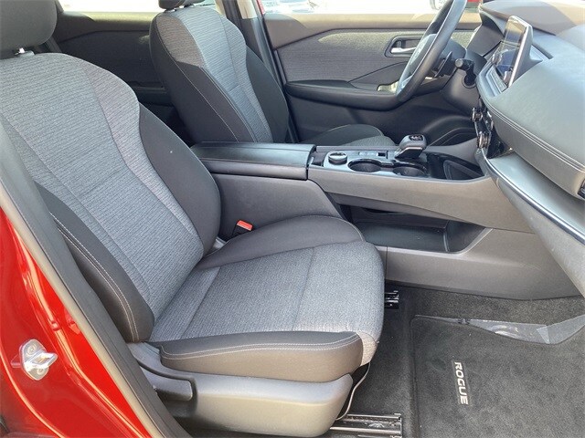 Rogue SV, 4D Sport Utility, 1.5L I3 Turbocharged DOHC 12V LEV3-ULEV50 201hp, CVT with Xtronic, AWD, Scarlet Ember Tintcoat, 18" Aluminum Alloy Wheels, 4-Wheel Disc Brakes, 6 Speakers, ABS brakes, Air Conditioning, AM/FM Radio, AM/FM radio: SiriusXM, Auto High-beam Headlights, Automatic temperature control, Black Splash Guards (Set of 4), Brake assist, Bumpers: body-color, Chrome Rear Bumper Protector, Cloth Seat Trim, Delay-off headlights, Driver door bin, Driver vanity mirror, Dual front impact airbags, Dual front side impact airbags, Electronic Stability Control, Emergency communication system: NissanConnect Services, First Aid Kit, Floor Mats w/1-Piece Cargo Area Protector, Four wheel independent suspension, Front anti-roll bar, Front Bucket Seats, Front Center Armrest, Front dual zone A/C, Front reading lights, Fully automatic headlights, Heated door mirrors, Illuminated entry, Knee airbag, Low tire pressure warning, NissanConnect featuring Apple CarPlay and Android Auto, Occupant sensing airbag, Outside temperature display, Overhead airbag, Overhead console, Panic alarm, Passenger door bin, Passenger vanity mirror, Power door mirrors, Power driver seat, Power steering, Power windows, Radio data system, Rear anti-roll bar, Rear Parking Sensors, Rear seat center armrest, Rear side impact airbag, Rear window defroster, Rear window wiper, Remote keyless entry, Security system, Speed control, Speed-Sensitive Wipers, Split folding rear seat, Spoiler, Steering wheel mounted audio controls, Tachometer, Telescoping steering wheel, Tilt steering wheel, Traction control, Trip computer, Turn signal indicator mirrors, Variably intermittent wipers.