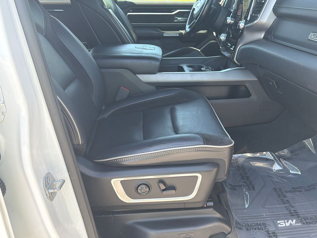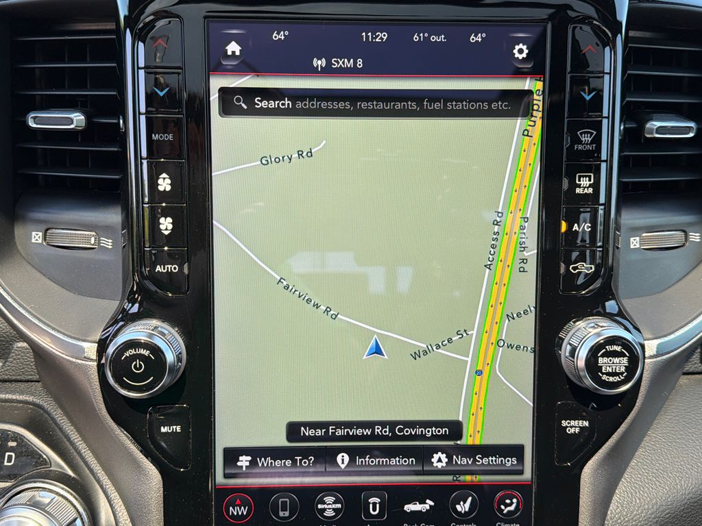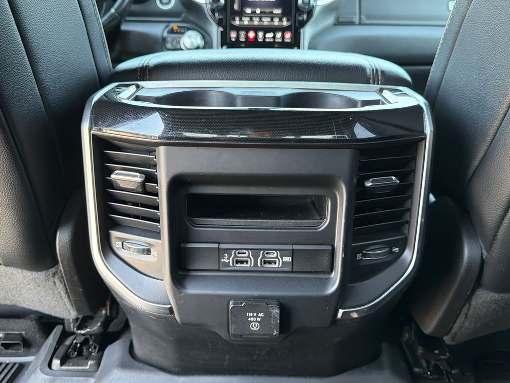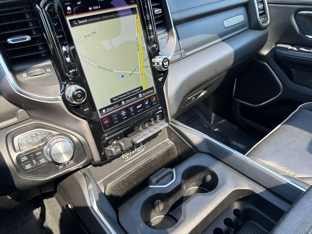 Inside, the spacious cabin is outfitted with premium leather-trimmed bucket seats, a full-length floor console, and the advanced Uconnect 12" touchscreen infotainment system with built-in navigation. The RamBox cargo management system and multi-function tailgate provide unparalleled utility and versatility.