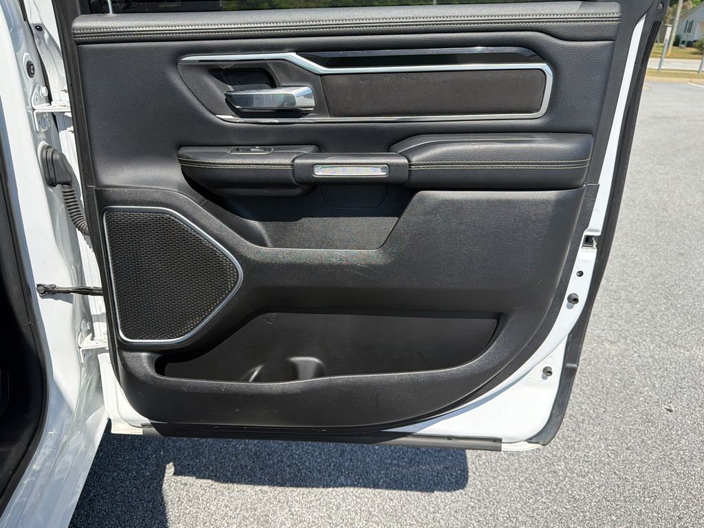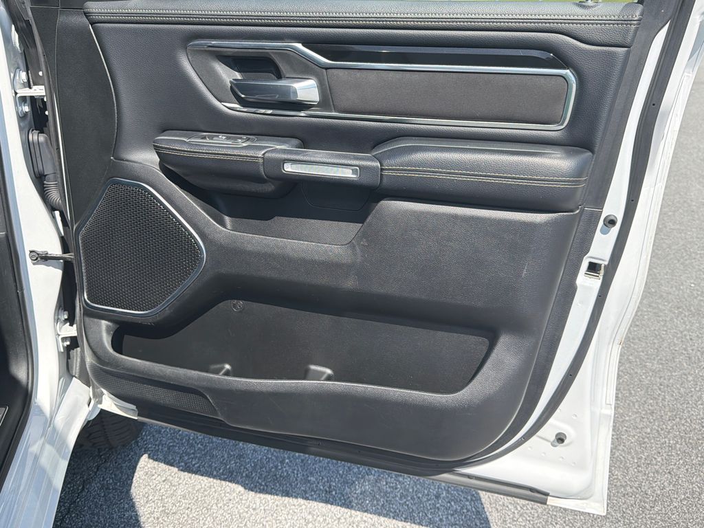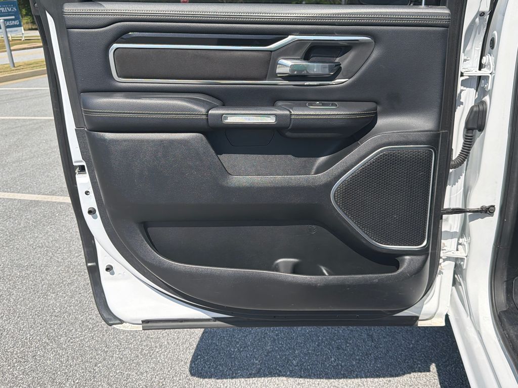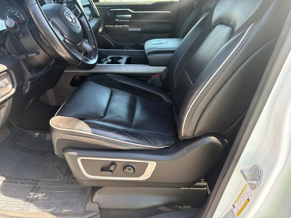 Inside, the spacious cabin is outfitted with premium leather-trimmed bucket seats, a full-length floor console, and the advanced Uconnect 12" touchscreen infotainment system with built-in navigation. The RamBox cargo management system and multi-function tailgate provide unparalleled utility and versatility.