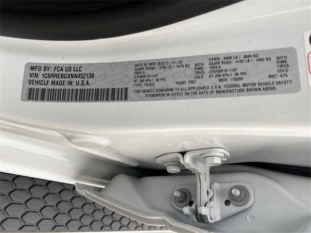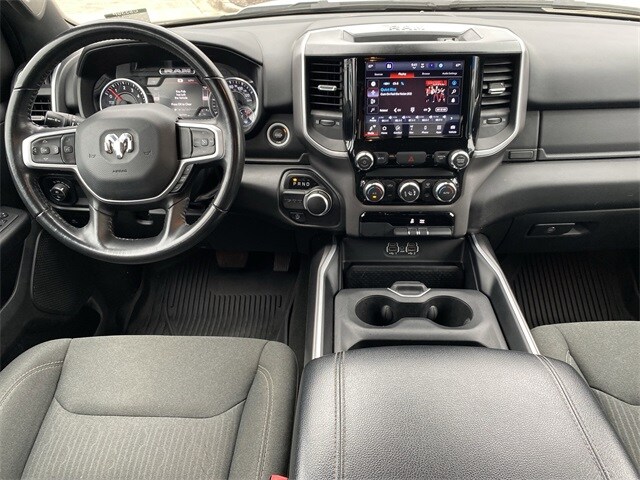 CARFAX One-Owner. 1500 Big Horn/Lone Star, 4D Quad Cab, 3.6L V6 24V VVT, 8-Speed Automatic, RWD, Bright White Clearcoat, Black Cloth, 3 Rear Seat Head Restraints, 3.21 Rear Axle Ratio, 4 Way Front Headrests, 4-Wheel Disc Brakes, 48V Belt Starter Generator, 4G LTE Wi-Fi Hot Spot, 6 Speakers, 8.4" Touchscreen Display, ABS brakes, Air Conditioning, Air Conditioning ATC w/Dual Zone Control, All R1 High Radios, All Radio Equipped Vehicles, AM/FM radio, Apple CarPlay, Auto-Dimming Exterior Driver Mirror, Auto-Dimming Rear-View Mirror, Big Horn Badge, Big Horn Level 1 Equipment Group, Black Exterior Mirrors, Black Premium Power Mirrors, Brake assist, Bumpers: chrome, Class IV Receiver Hitch, Cloth Bench Seat, Cluster 7.0" TFT Color Display, Compass, Connected Travel & Traffic Services, Connectivity - US/Canada, Convex Wide-Angle Mirror Insert, Delay-off headlights, Disassociated Touchscreen Display, Driver door bin, Dual front impact airbags, Dual front side impact airbags, Electronic Stability Control, Emergency communication system: SiriusXM Guardian, Exterior Mirrors Courtesy Lamps, Exterior Mirrors w/Heating Element, Exterior Mirrors w/Supplemental Signals, For Details, Visit DriveUconnect.com, For More Info, Call 800-643-2112, Front anti-roll bar, Front Center Armrest w/Storage, Front fog lights, Front reading lights, Front Seat Back Map Pockets, Front wheel independent suspension, Fully automatic headlights, Global Telematics Box Module (TBM), Glove Box Lamp, Google Android Auto, GPS Antenna Input, GPS Navigation, HD Radio, Heated door mirrors, Illuminated entry, Integrated Center Stack Radio, Integrated Voice Command w/Bluetooth, Leather steering wheel, Low tire pressure warning, Occupant sensing airbag, Outside temperature display, Overhead airbag, Overhead console, Panic alarm, ParkView Rear Back-Up Camera, Passenger door bin, Passenger vanity mirror, Power 2-Way Driver Lumbar Adjust, Power 8-Way Driver Seat, Power Adjustable Pedals, Power door mirrors, Power steering, Power windows, Power-Folding Mirrors, Quick Order Package 23Z Big Horn, Radio data system, Radio: Uconnect 3 w/5" Display, Radio: Uconnect 5 Nav w/8.4" Display, Radio: Uconnect 5 W w/8.4" Display, Rear 60/40 Folding Seat, Rear anti-roll bar, Rear Dome w/On/Off Switch Lamp, Rear Power Sliding Window, Rear seat center armrest, Rear step bumper, Rear Window Defroster, Remote keyless entry, SiriusXM Radio Service, SiriusXM Satellite Radio, SiriusXM w/360L, Speed control, Split folding rear seat, Steering wheel mounted audio controls, Sun Visors w/Illuminated Vanity Mirrors, Tachometer, Telescoping steering wheel, Tilt steering wheel, Traction control, Trip computer, Universal Garage Door Opener, USB Host Flip, Variably intermittent wipers, Voltmeter, Wheels: 18" x 8" Cast-Aluminum Painted.